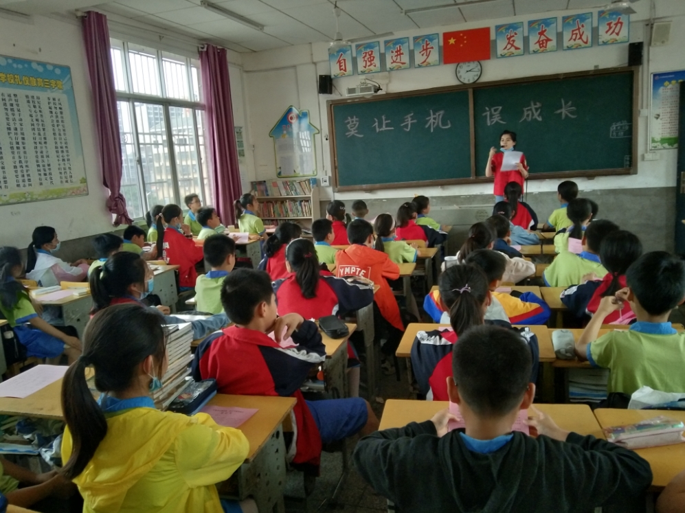 活动分两个环节,首先由该校五年级二班班主任易晓云老师宣读“若要少年圆梦想、莫让手机误成长”倡议书,并就手机影响学习、影响他人和集体、侵犯他人隐私等危害青少话题进行讲解和讨论,鼓励学生合理使用手机,健康使用手机。随后,社区志愿者钟灵毓秀向学生讲解了文明创建应知应会知识,通过现场提问、自由抢答等互动方式加深学生对文明创建的认知度,并对回答正确的学生发放小礼品进行鼓励,号召同学们从身边小事做起,努力践行社会主义核心价值观,争做新时代的好少年。