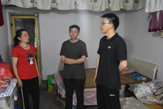 局党组书记、局长吴尚勇,局党组副书记、副局长杜军到梁安娜家中捐赠现金(拍摄:吴德芳、傅南朝)