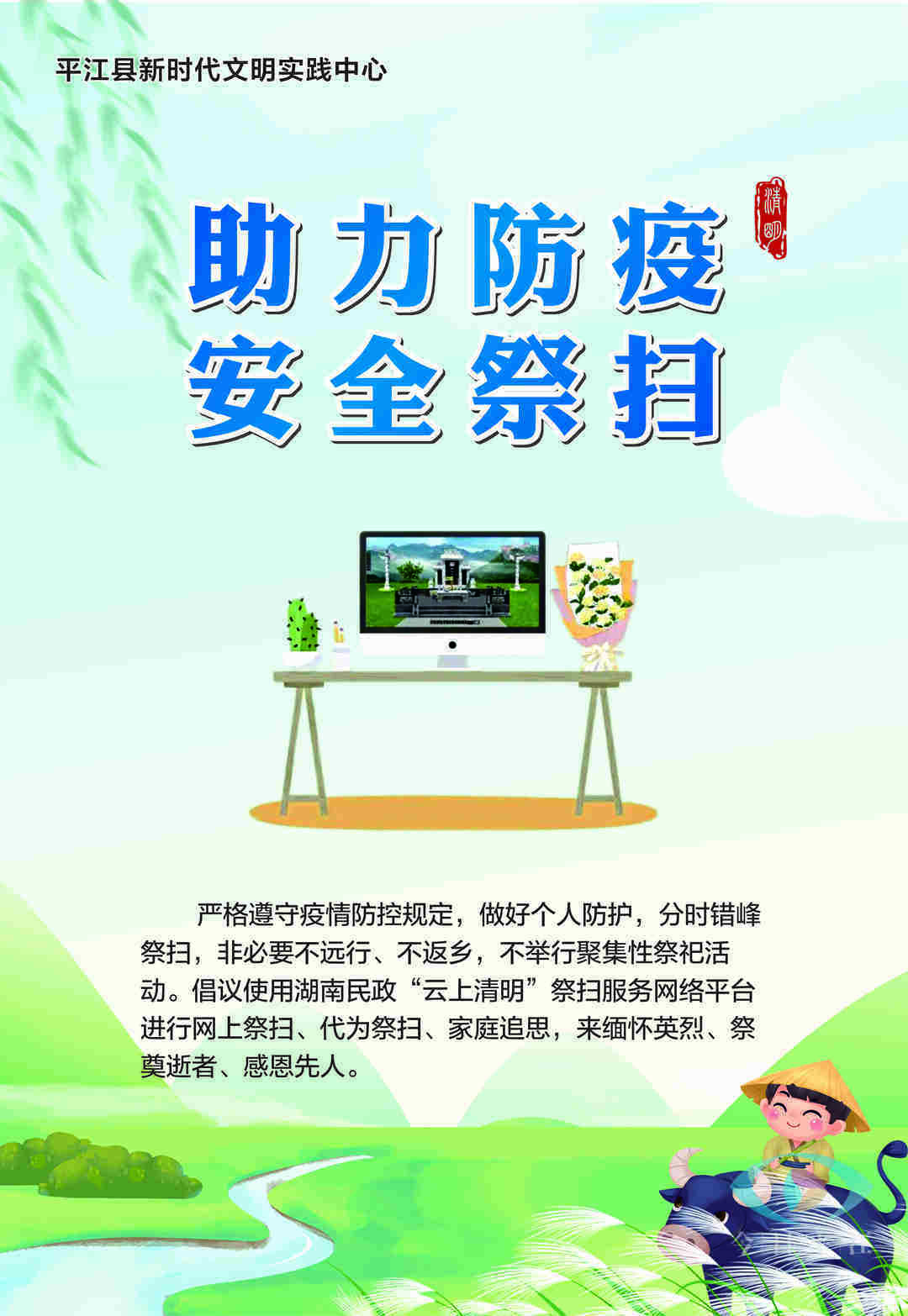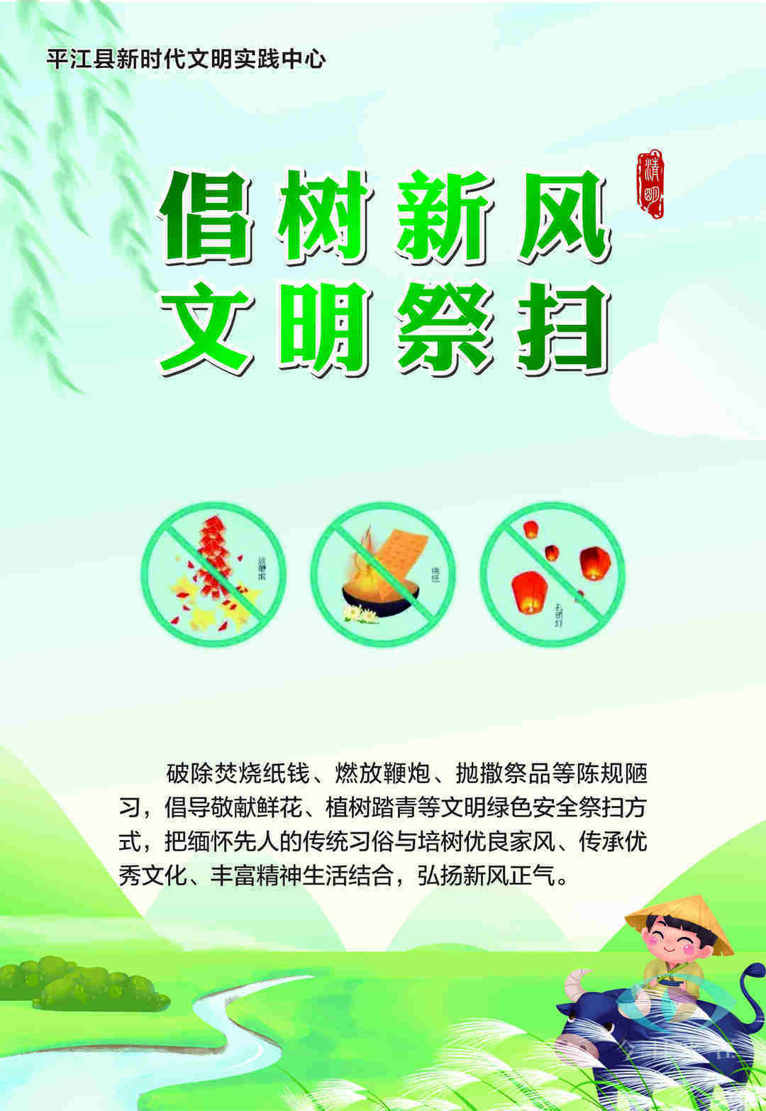 缅怀先人,重于心胜于形。让我们携起手来,倡导新风、保护环境、共抗疫情,用文明之风传承传统习俗,用文明行为守护美好家园,让清明节更加清新和文明,为创建全国文明城市贡献力量。
