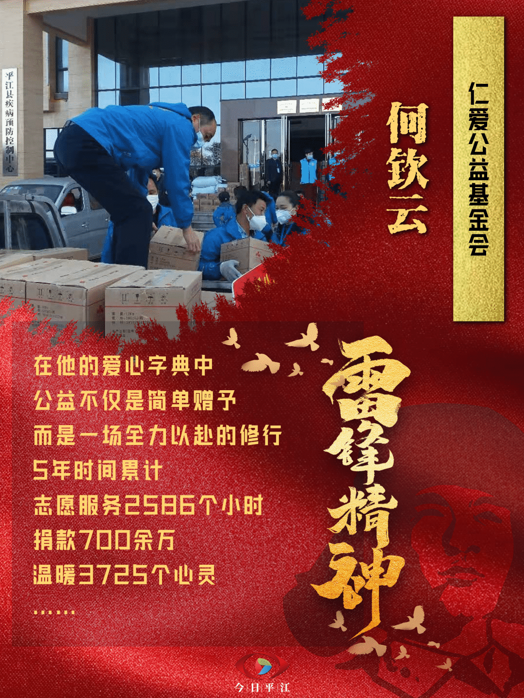 那些向上向善的社会担当都是雷锋精神的缩影,他们用平凡人的行动让自己闪烁着耀眼光芒。今天,今日平江请您一起来关注平江这片土地上的新时代“雷锋”同志。
