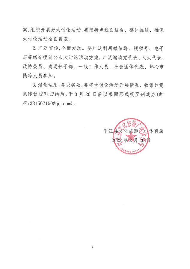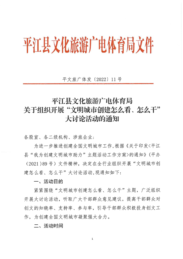 平江县文化旅游广电体育局关于组织开展“文明城市创建怎么看、怎么干”大讨论活动的通知