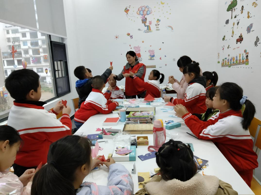 同时,平江县乡村“复兴少年宫”坚持以理想教育“树人”,注重将地域范围内的红色资源、爱国主义教育基地等纳入教育实践点,通过讲红色故事、读红色书籍、游红色地标,引导农村少年儿童学党史、听党话、跟党走,厚植爱党爱国爱社会主义情怀。并结合传统节日及本地乡土文化特色,常态开展剪纸、皮影戏、花灯制作、诗词吟诵等“非遗小课堂” ,有效打通服务农村少年儿童的“最后一公里”,让农村孩子在家门口实现了学中乐、乐中学。