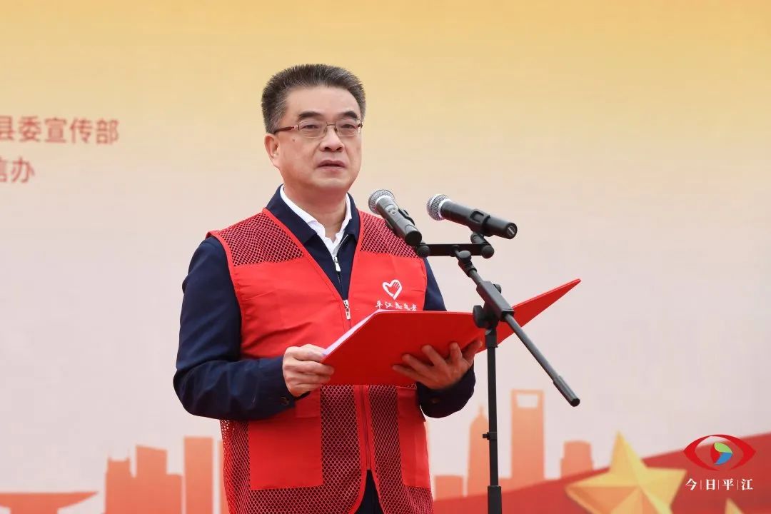 启动仪式现场,县委副书记、政法委书记鲁勇宣读“志愿学雷锋 服务展风采”倡议书,县委常委、组织部部长潘岳清宣读《平江县2022年度最美文明实践系列志愿服务组织和个人的通报》,县委常委、宣传部部长田浩解读《关于组织开展平江县2023年“志愿学雷锋 服务展风采”志愿服务活动的通知》,志愿者代表毛均发言。