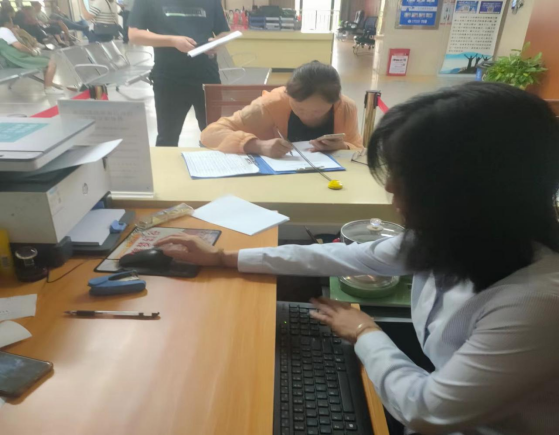 9月4日上午,人社工伤窗口工作人员提前为办事群众服务。