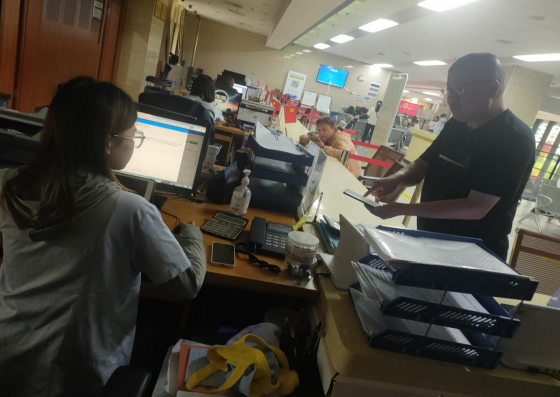 9月5日下午,税务窗口罗灿辉为办事群众提供延时服务。
