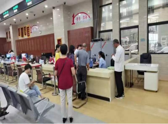 9月4日上午,不动产窗口工作人员提前为办事群众服务。