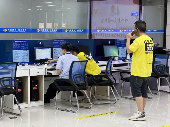9月6日上午,税务窗口吴秀秀为纳税人提供延时服务。