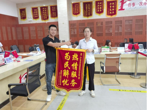 9月7日下午,市监窗口周琼收到企业赠送锦旗,感谢其提供高效优质服务。