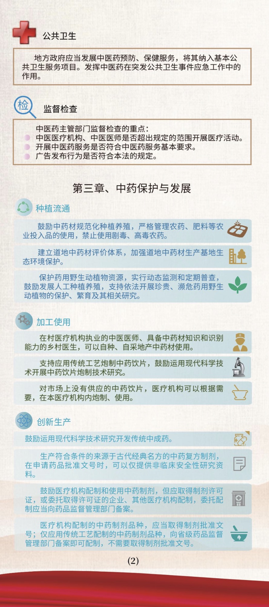 中医药是中华民族的瑰宝,是中华文明宝库的璀璨明珠,闪耀着中华优秀传统文化的光芒。作为我国中医药领域第一部综合性、全局性、基础性的法律,《中华人民共和国中医药法》自2017年7月1日施行至今已有六年,今天,邀请大家一起来重温和解读。