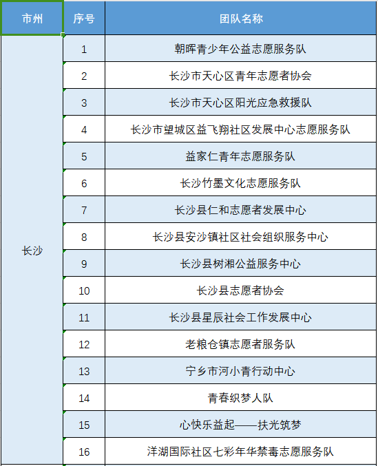 2024年湖南省“七彩假期”志愿服务团入选团队名单(部分)