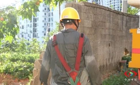 7月31日下午4点,阳光正烈,记者来到三犊源安置小区,看到电力工人李杰武和他的同事时,正顶着烈日开展带电接引流线作业。
