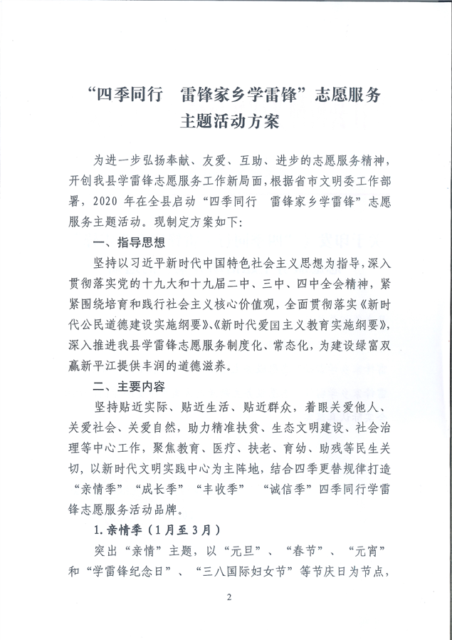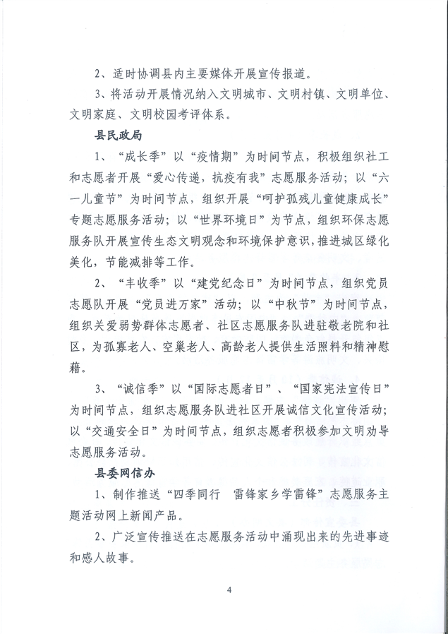 关于印发《“四季同行·雷锋家乡学雷锋”志愿服务主题活动方案》的通知
