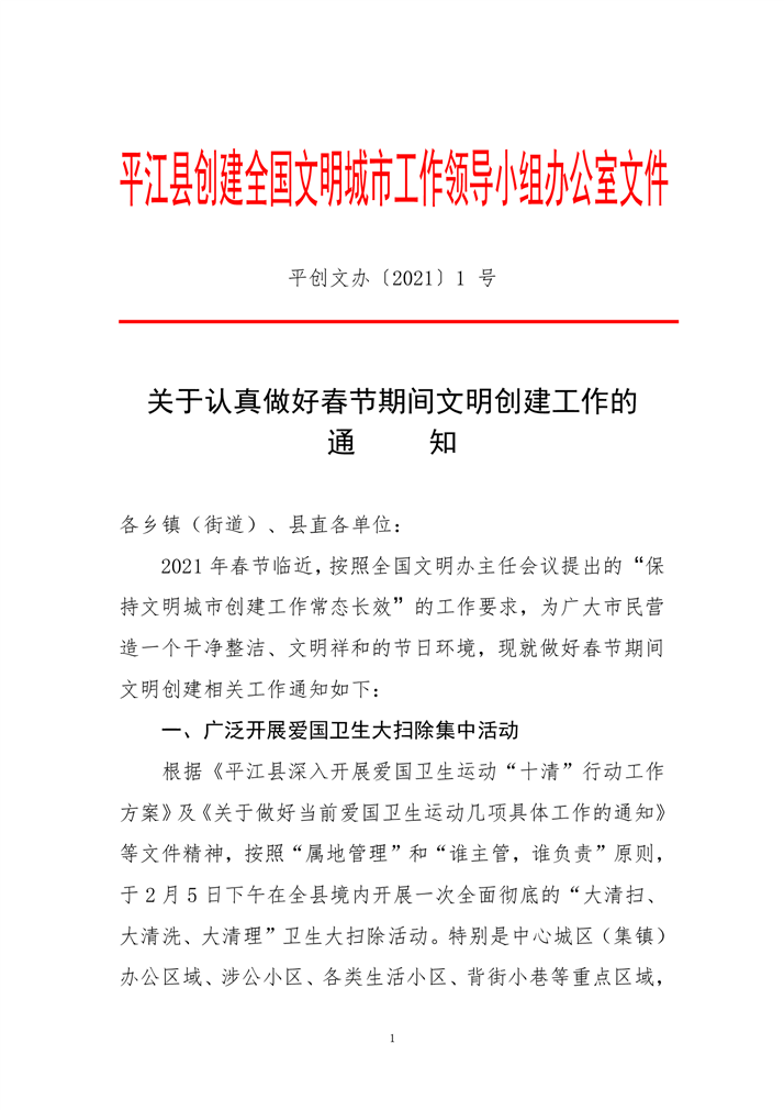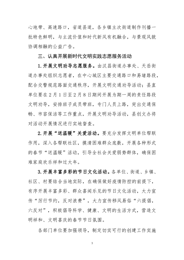 关于做好春节期间文明创建工作的通知
