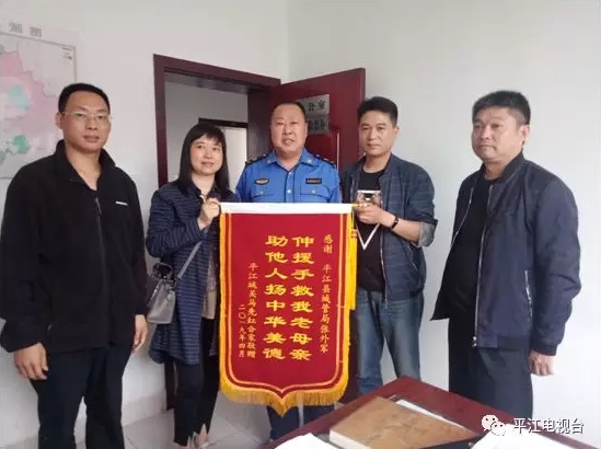 5月5日,市民马先红和家人来到县城管局,将一面写有“伸援手救我老母亲,助他人扬中华美德”的大红锦旗,送给张外军并当面表达了谢意。