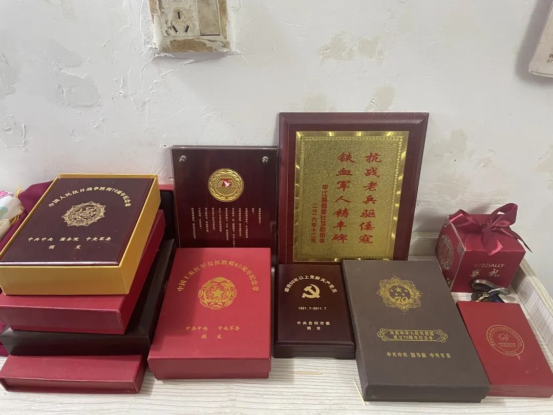 这么多年过去了,那个战火纷飞的年代,却历历在目。中国人民抗日战争胜利70周年纪念章、中国工农红军长征胜利80周年纪念章、庆祝中华人民共和国成立70周年纪念章、光荣在党50年纪念章……爷爷身上佩戴的一个个勋章,都是他英雄事迹的剪影。