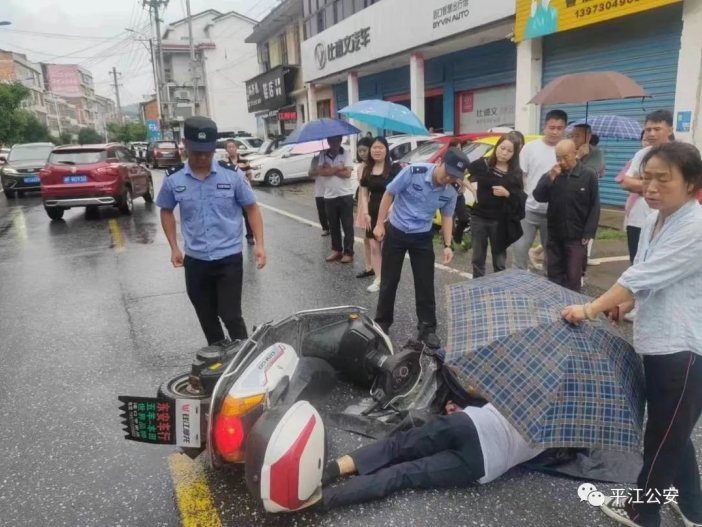 值班民辅警正在吃午饭,连忙放下饭碗,出警赶至现场。只见一名老人倒在地上,意识清醒但无法动弹,周围有许多群众围观,眼神中透着关切。但谁也不敢随意移动和触碰老人。天下着雨,有一位热心的群众怕老人被淋湿,上前为其撑伞遮挡民辅警一边合力将压在老人腿上的摩托车移开,一边对老人进行问询。得知他是浯口镇兰桥村人后,迅速联系该村的支部书记通知老人家属赶往现场很快,救护车到了,家属也赶到了,在医务人员的指挥下,大家齐心协力将老人抬上担架,送往医院进行救治。经医生诊断,老人伤情无大碍。