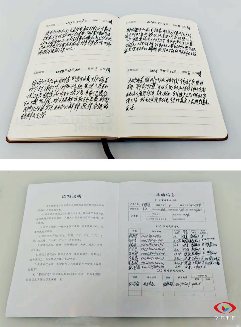 打开驻村日志,上面密密麻麻记录着张滔根一年来在咏生村驻村工作每天的所见、所干、所思。结对帮扶联系手册上,更是认认真真详细记录着每一位结对帮扶对象家庭详细信息和走访记录。