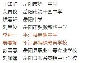 2024年“新时代岳阳好少年”名单(排名不分先后)