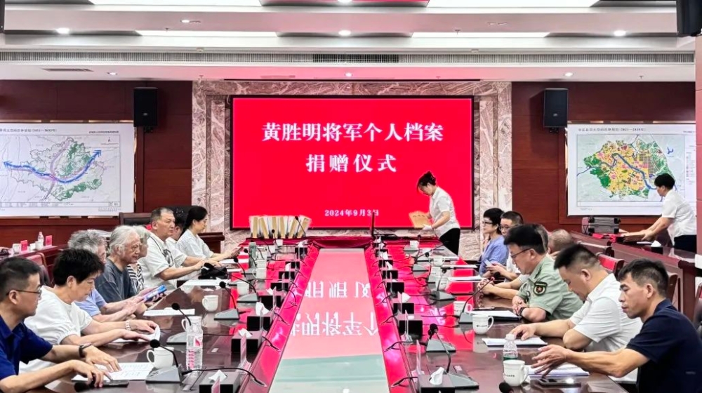 捐赠仪式上,黄胜明将军的子女们将父亲生前荣获的二级八一勋章、二级独立自由勋章、二级解放勋章、一级红星功勋荣誉章等52件(套)珍贵革命文物捐赠给了平江县档案馆,让它们在这里继续讲述革命的故事,传承红色基因。