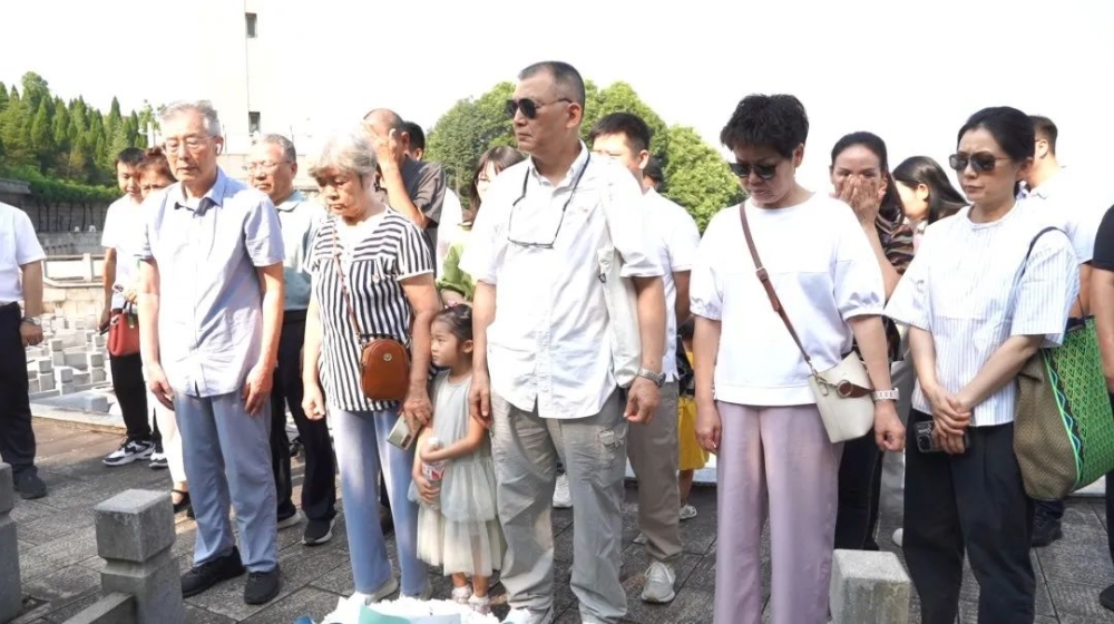 ▲9月3日,黄胜明将军的子孙后辈们来到平江县烈士陵园,为其扫墓并敬献鲜花。