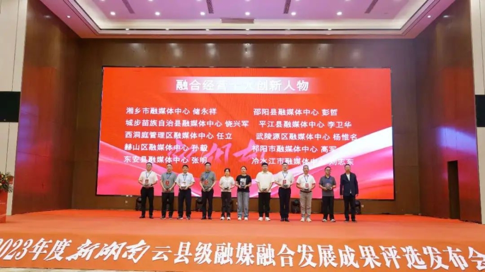 9月24日,“聚力赋能 深融共生”2023年度“新湖南云”县级融媒融合发展成果评选发布会召开。现场对系列“十佳”进行表彰,县融媒体中心李卫华获评“融合经营十大创新人物”。这是该中心继2022年荣获“新湖南云”县级融媒建设“十佳客户端”、2023年“新湖南云”县级融媒融合发展“十大创新案例”后,再次获得湖南日报社年度大奖。会上,县融媒体中心作为四个发言单位之一,以《向新而生 向融而行——“本台报道,本台被淹”火爆出圈的分享与启示》为题作交流分享。