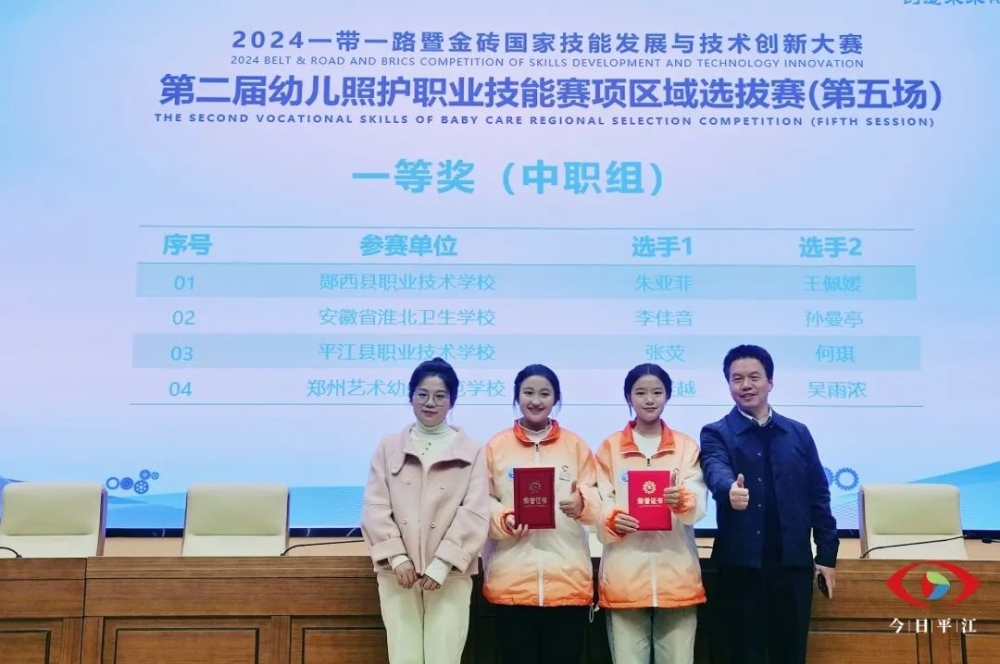 近日,2024“一带一路”暨金砖国家技能发展与技术创新大赛第二届幼儿照护职业技能赛项区域选拔赛中,平江县职业技术学校在幼儿照护和产后恢复两个赛项分获区域一等奖、二等奖,两个赛项均为湖南省第一名,并将代表湖南省出征国赛。