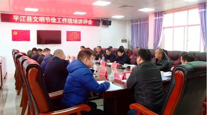 1月15日,平江县文明节俭工作现场讲评会在梅仙镇召开。通过现场讲评,实地参观学习,推进我县文明操办婚丧喜庆事宜工作整体持续健康深入发展。县委常委、宣传部部长熊江新出席。