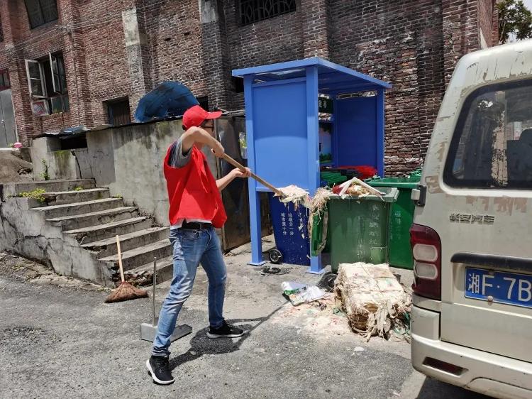 活动开始后,志愿者们顶着烈日,用垃圾钳、铲子、扫把等工具,对小区的花坛、沟渠等垃圾死角进行清理,对沟渠下水口进行疏通以防下雨积水,徒手拔除墙缝角落的杂草,从源头上阻断蚊虫的孳生。除此之外,为引导小区居民不乱扔垃圾,志愿者们还对小区生活垃圾分类投放亭进行了清运,将垃圾桶清洗后摆放整齐,让投放亭不再臭气扑鼻。
