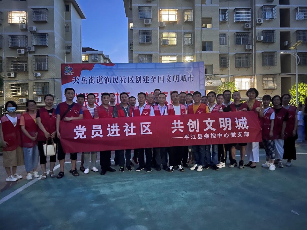 7月11日傍晚,县疾控中心全体党员到办公地辖区内的润民社区保障房小区球场,开展“党员进社区 共创文明城”主题党日活动。