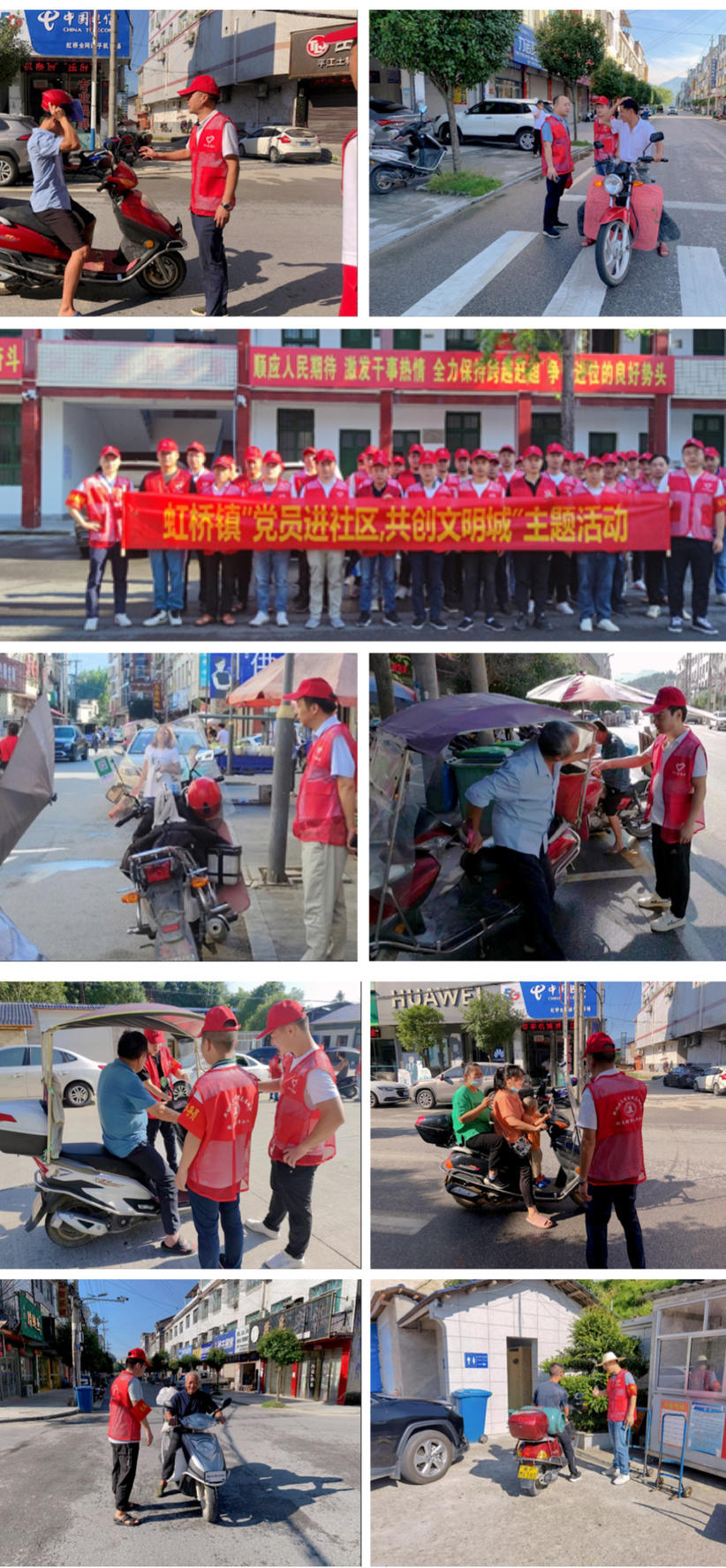 为深入推进“四亮”创建主题活动,全面落实县“党员进社区,共创文明城”工作要求,7月13日,虹桥镇机关支部全体党员到虹桥街道社区报到,并分成四组到社区街道开展交通文明劝导活动,对车辆乱停乱放、不按交规行驶、骑摩托车不佩戴头盔等不文明行为进行劝导和制止。