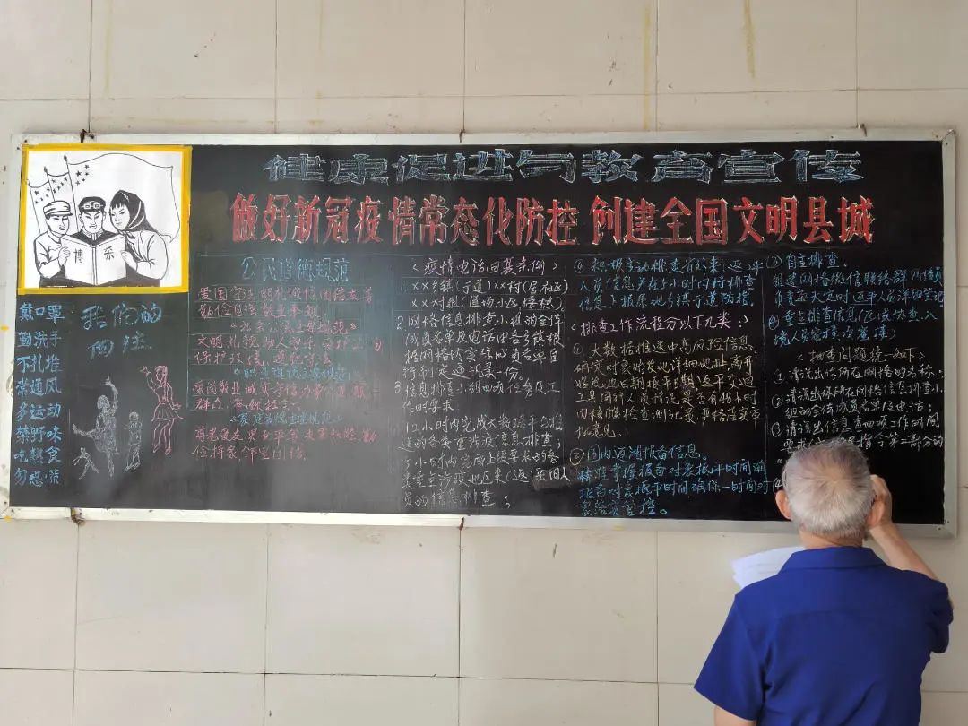 "黑板报内容丰富多彩,每次出黑板报我们小区居民都很喜欢去看一看,一是为了了解当前党和国家的一些政策,二是这些老人坚持出黑板报的精神让我深深感动。你看,这是今天8月5日刚出的关于疫情防控电话抽查的要点知识"。一位小区居民指着黑板报说道。