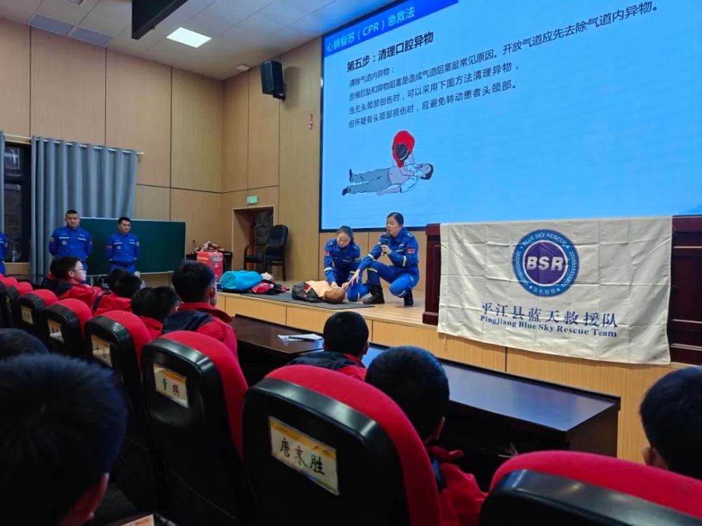 12月2日,平江县蓝天救援队来到平江县城北学校,为该校100余名师生送上一堂应急救护公益培训,通过校园常见急症和意外伤害急救知识的讲解,进一步提升了师生应对校园突发紧急状况的基本能力。