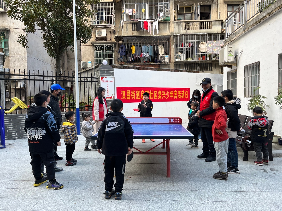 户外乒乓球比赛活动中,“运动员”们精神饱满,挥动着球拍,小小白球飞来飞去,传递着团结,传递着友谊,传递着快乐。汉昌街道启明社区“少年宫”里欢声笑语,热闹非凡。