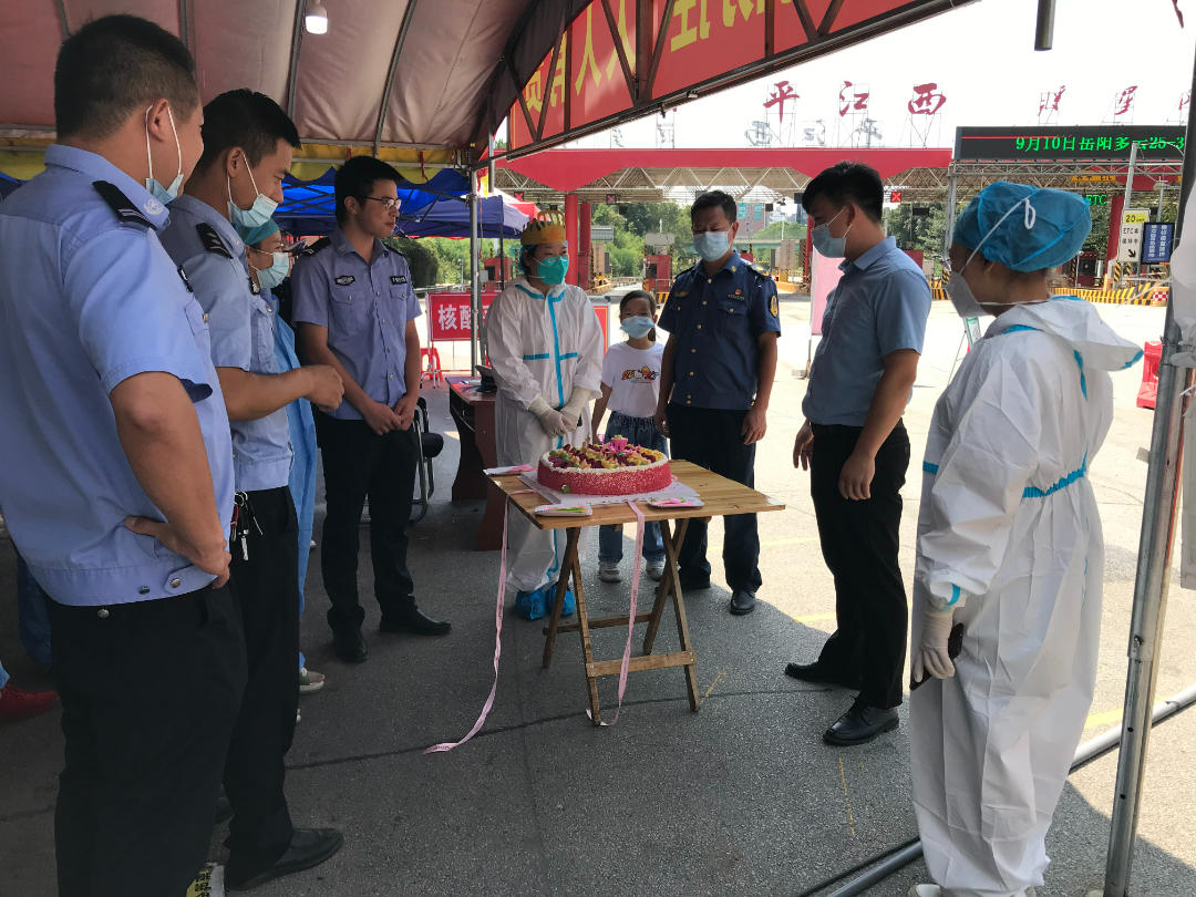 “祝你生日快乐,祝你生日快乐.......”当熟悉的生日歌在平江西高速卡口响起,刚刚从校园毕业却几个月始终如一地坚守在抗疫一线的县三医院护士毛韵,随着歌声吹灭了蜡烛,正式迎来了自己的二十岁……这是在中秋节时,伍市镇党委、政府慰问平江西高速卡口工作人员时发生的暖心一幕,简单的生日会、普通的生日蛋糕、朴素的祝福在此中秋佳节的疫情防控第一线被赋予了不平凡的意义。