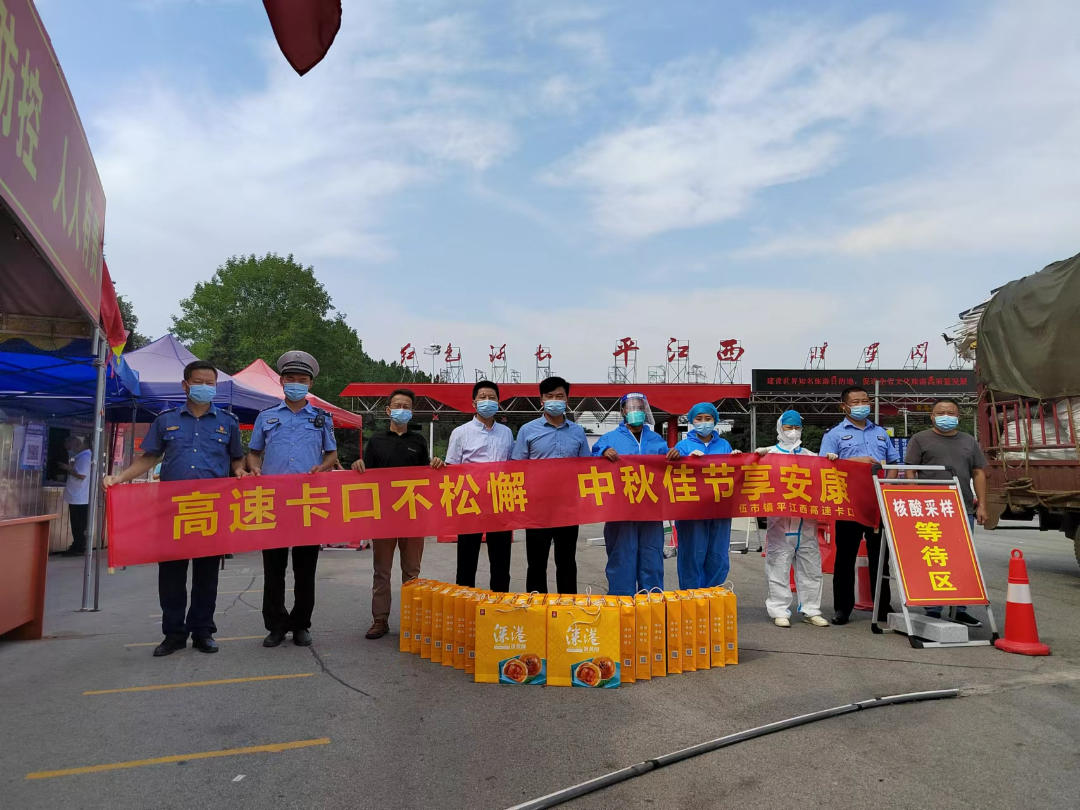 中秋节假日期间,来往高速公路的车流量显著增多。为持续做好疫情防控工作,平江西高速卡口工作人员轮班坚守,全力守好疫情防控“前哨”,筑牢平江县疫情防控“第一道防线”。伍市镇党委、政府在中秋节当天,前往慰问平江西高速路口防疫健康服务点一线值守人员,关心一线工作人员的自身防护、饮食、休息等后勤保障工作,并向他们致以问候和送上月饼、水果、矿泉水等中秋慰问物资。