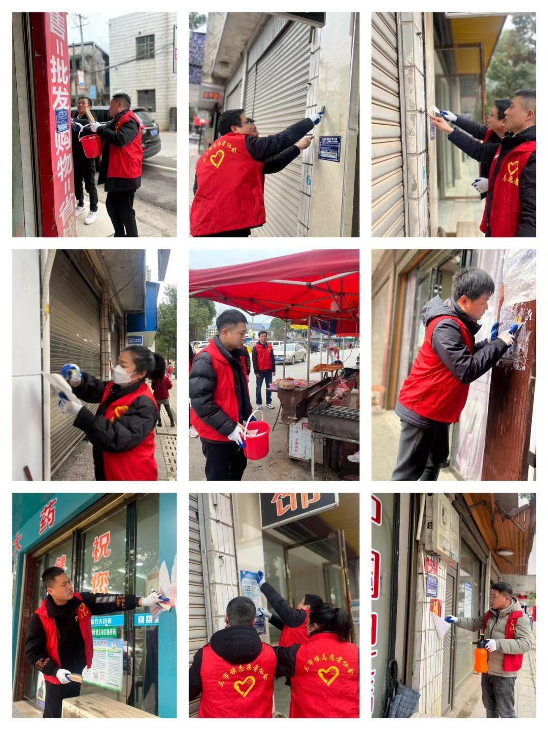 在“洗脸”活动中,以主干道沿线划分两个小组对区域内垃圾、杂物等进行卫生清洁。烈日当头,鲜艳的党旗和志愿服务队旗迎风飘扬,志愿者们拿着清扫工具对道路两旁水沟、人行道、广告墙等卫生死角进行全面清扫,共整治出店经营和晴雨篷22处、清理门店前杂物11处、铲除牛皮癣和违规广告82处……大家不怕脏、不怕累,扮靓自己的家园。