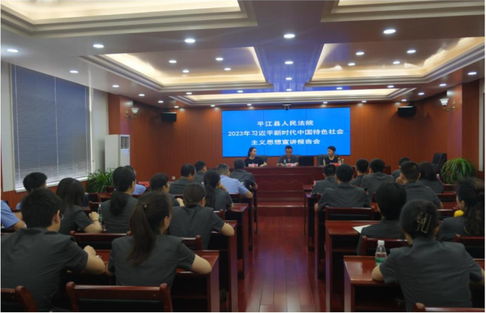 为深入学习贯彻落实习近平新时代中国特色社会主义思想和党的二十大精神,扎实推进新思想入脑入心,6月21日,县人民法院召开2023年“两进两提升”宣讲报告会。会议由院党组副书记、副院长林雄文主持,机关和汉昌法庭全体工作人员参加会议,县委宣传部宣教室主任陈娜、新时代文明实践服务中心副主任王湖妹应邀授课。