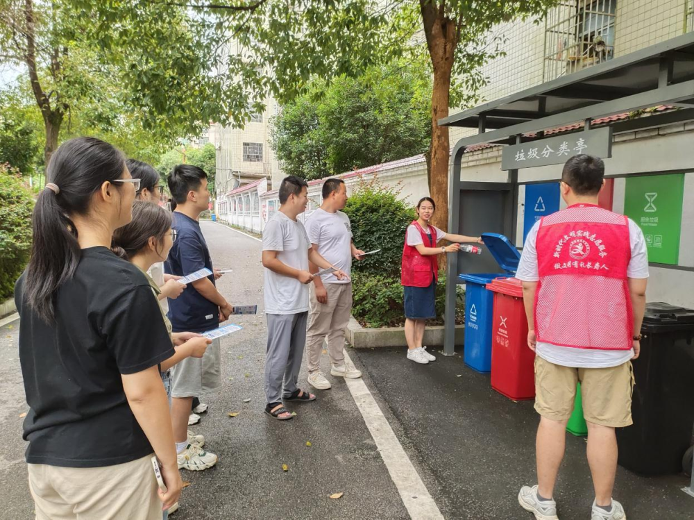 图为志愿者为群众普及垃圾分类知识