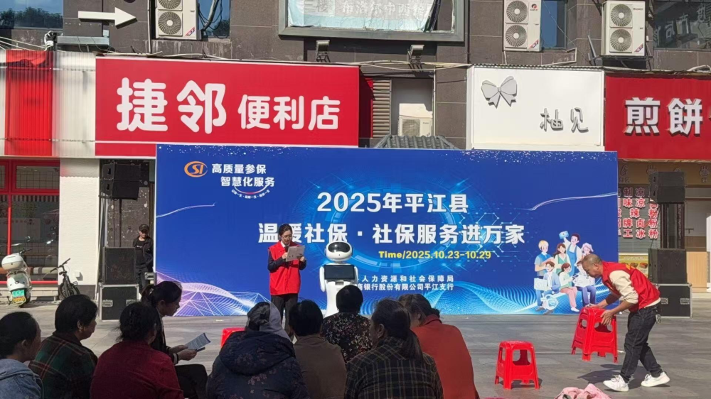 10月24日,由县人力资源和社会保障局联合中国工商银行平江支行举办的2025年“温暖社保·社保服务进万家”活动在一中广场举行。活动将社保服务窗口前移,通过“面对面”解读、“手把手”教学、“心贴心”交流,把惠民政策和便捷服务直接送到群众身边。