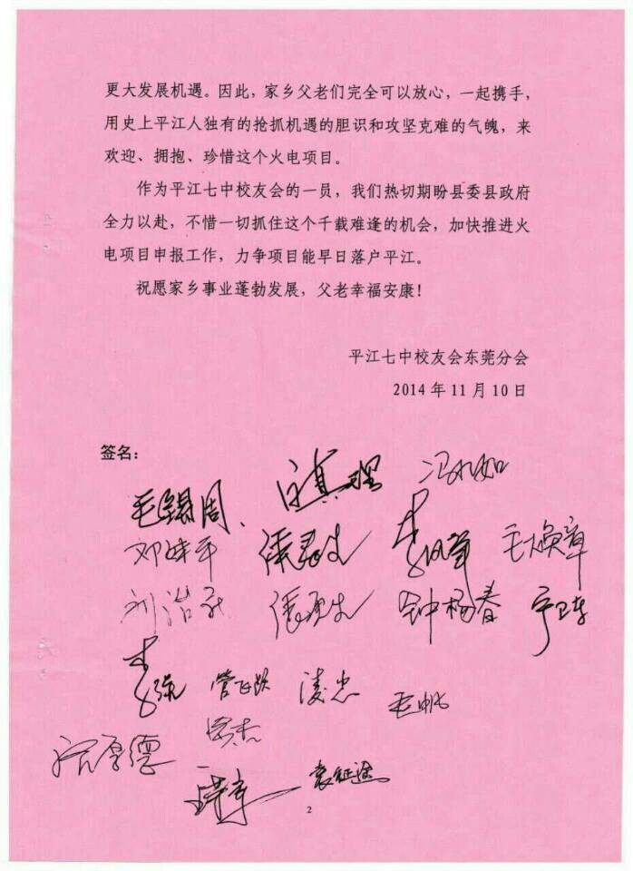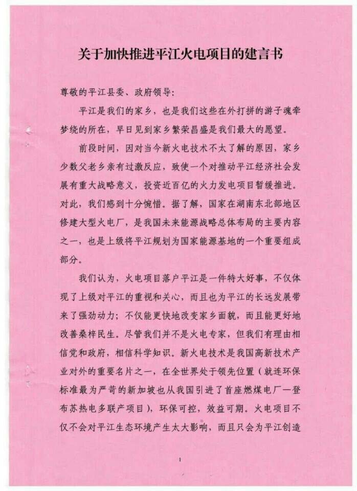 平江七中校友会东莞分会:关于加快推进平江火电项目的建言书