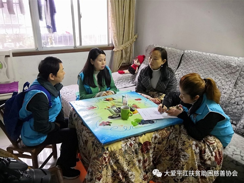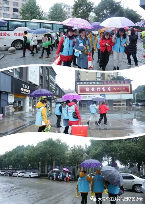 协会(基金会)副会长,海莹珍珠连锁老板毛小芳,冒着滂沱大雨入户走访调研