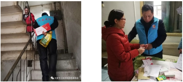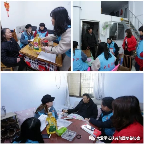 接着,走访了钟会龙 朱督群 吴华 谢世安等社区困难群众,与大家进行面对面交流,详细了解他们的健康状况、经济收入和生活开支等情况,听取他们谈及目前存在的困难和问题、以及对生产生活方面的打算和诉求,为他们送去了“大爱平江”扶贫助困慈善协会(基金会)提供的慰问品,并鼓励他们要树立极乐观的生活信念。