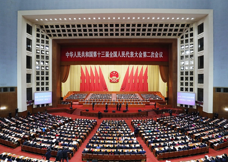 3月15日,第十三届全国人民代表大会第二次会议在北京人民大会堂举行闭幕会。新华社记者 刘彬 摄
