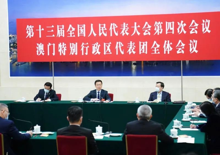 韩正分别参加了香港代表团、澳门代表团审议。在认真听取香港、澳门地区全国人大代表发言后,韩正表示,过去一年,在以习近平同志为核心的党中央坚强领导下,我国改革开放和社会主义现代化建设又取得新的重大进展。在中央的大力支持下,在特区行政长官和特区政府带领下,香港、澳门着力防控疫情、恢复经济、纾解民困,取得了积极成效。近几年来,特别是2019年香港发生“修例风波”以来,香港社会出现的一些乱象表明,香港特别行政区现行的选举制度机制存在明显的漏洞和缺陷。完善香港特别行政区选举制度意义重大,也是一项紧迫任务。“爱国者治港”是“一国两制”方针的应有之义,中央在这个问题上的态度是一以贯之、从未改变的。必须采取必要措施完善香港特别行政区选举制度,确保以爱国者为主体的“港人治港”,确保香港特区政府依法施政和有效治理,确保香港“一国两制”实践始终沿着正确方向前进。要准确把握完善香港特别行政区选举制度的基本原则,始终坚持全面准确贯彻“一国两制”、“港人治港”、高度自治的方针,始终坚持“爱国者治港”,始终坚持依法治港。韩正对港澳地区全国人大代表工作予以充分肯定,希望大家勤勉尽责、奋发有为,全力支持全国人大及其常委会关于完善香港特别行政区选举制度的决定和修法,坚定支持行政长官和特区政府依法施政,加强常态化疫情防控,解决经济民生领域的深层次问题,促进港澳融入国家发展大局,为“一国两制”实践行稳致远作出新的贡献。