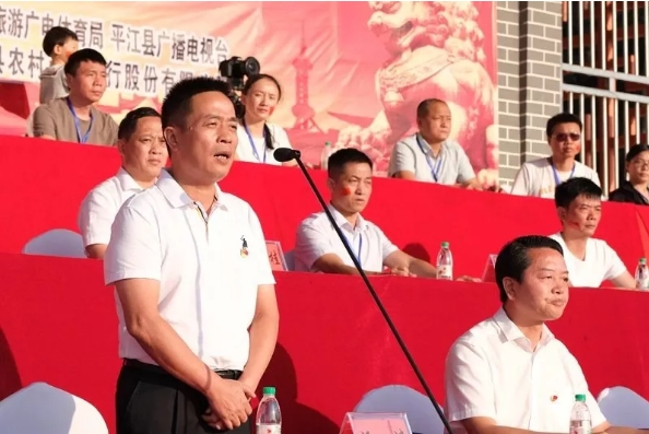▲县委书记汪涛宣布篮球赛开幕