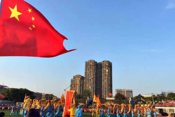 龙腾狮跃,鼓声震天,舞动平江,歌唱祖国。这是一场盛大的聚会,这是一次全民狂欢。鼓声响起来,欢笑写满脸,大家唱响《我和我的祖国》,共同庆祝祖国的70岁生日。在深情婉转的歌声中,在篮球场上的奋力拼搏中,全县人民的心更近了,对祖国的爱更深了。(周杏)