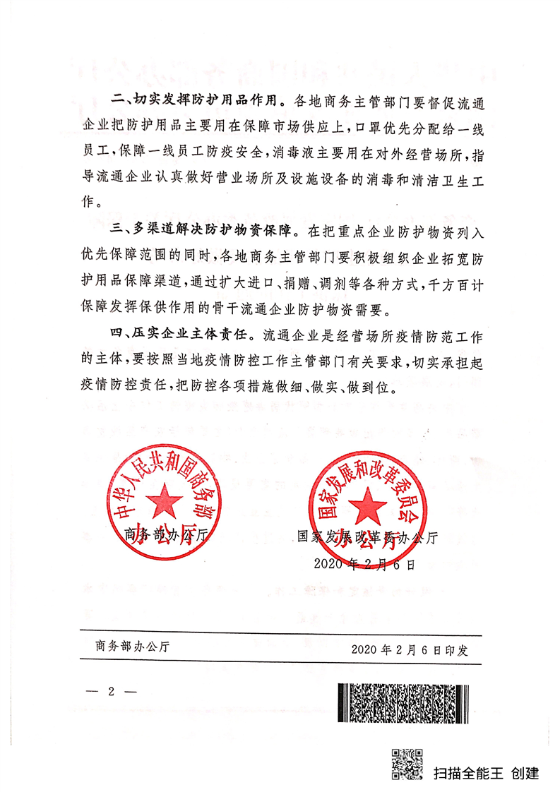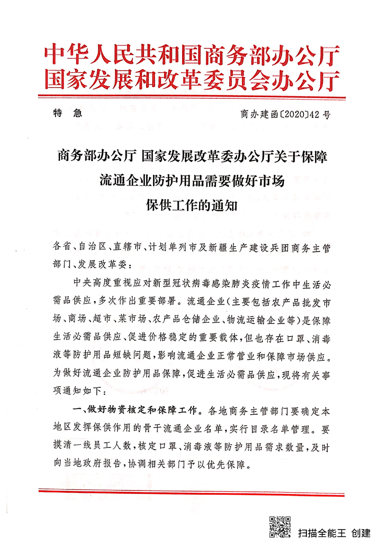 关于保障流通企业防护用品需要 做好市场保供工作的通知