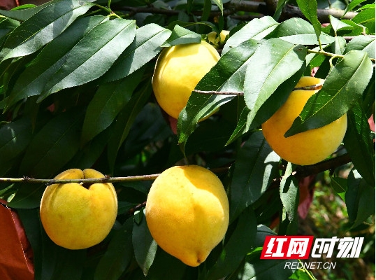 103亩黄桃树挂了2万斤金灿灿的黄桃。