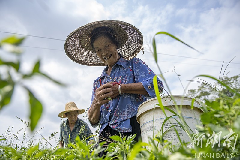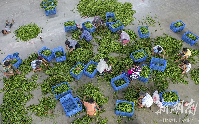 (8月22日,永州市冷水滩区麦子园村,村民在采摘辣椒。湖南日报·华声在线记者 辜鹏博 摄)