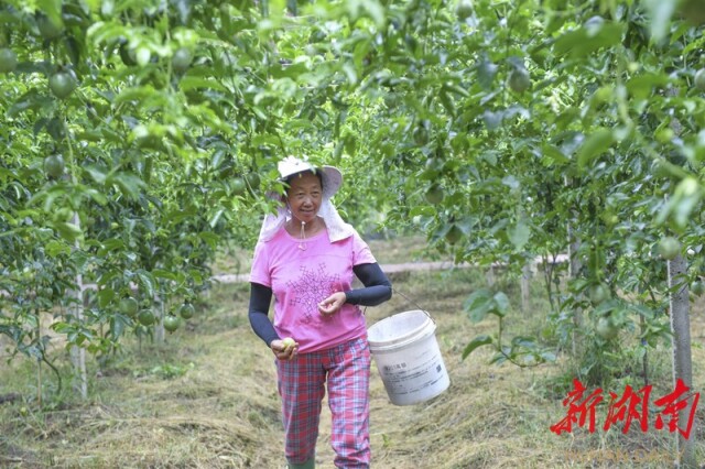 8月26日,双牌县麻江镇廖家村,村里女能手廖春艳百香果园子里捡果。她种植的20多亩百香果从育苗到摘果,全都是她一个人在打理。湖南日报·新湖南客户端记者 辜鹏博 摄
